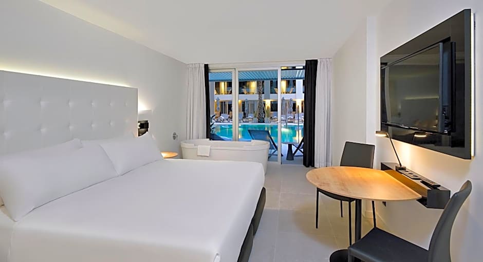 With direct access to the pool area, bathrobe and flat-screen TV.